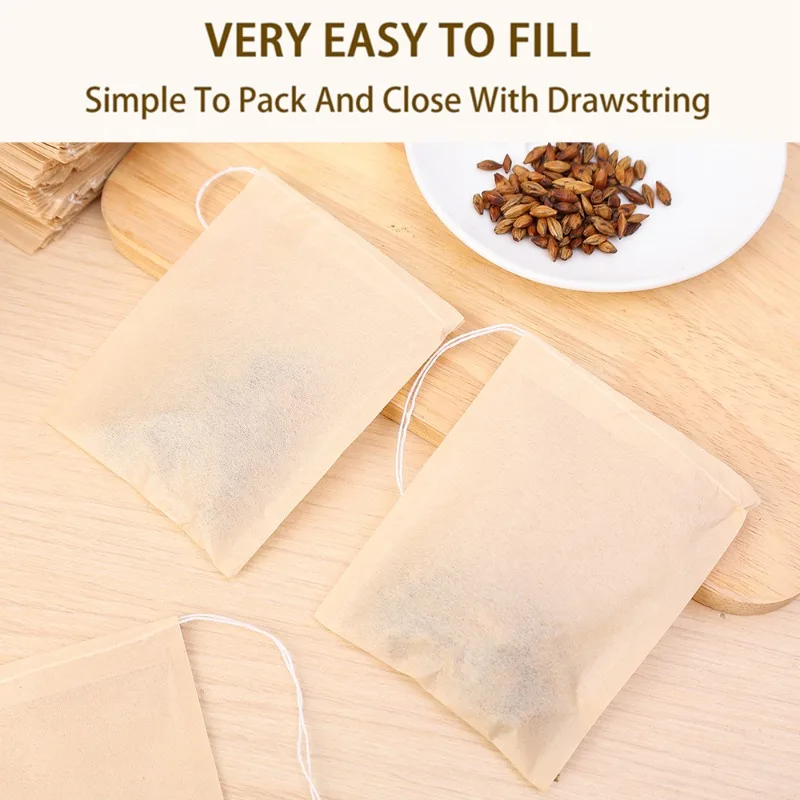 500/100x Teabags with Drawstring Filter Empty Tea Bags for Coffee Bean Leaf Tea Powder Herbal Medicine Biodegradable Paper Bag